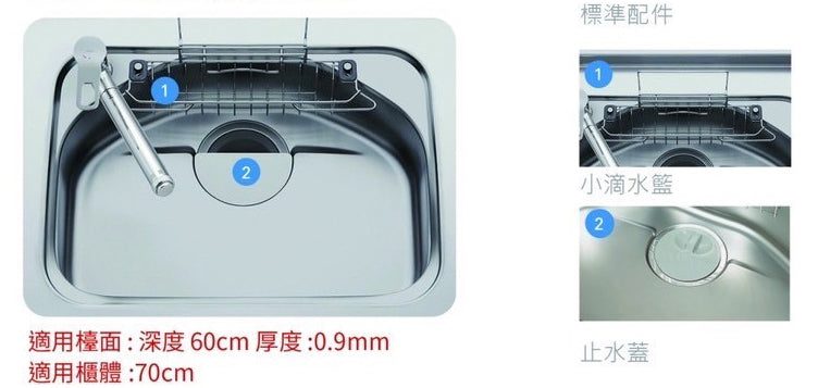 水槽內側大範圍的階梯式設計,讓您可以乾淨地洗去污垢和灰塵並順著水槽後面的台階順利沖掉。特殊處理的底部形狀能迅速將水槽內的水往底部集中流入排水管。