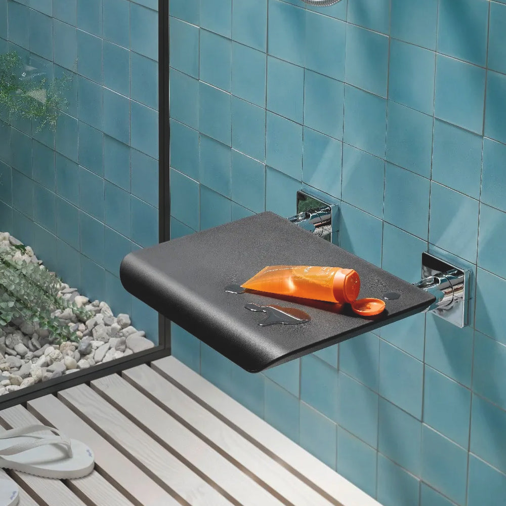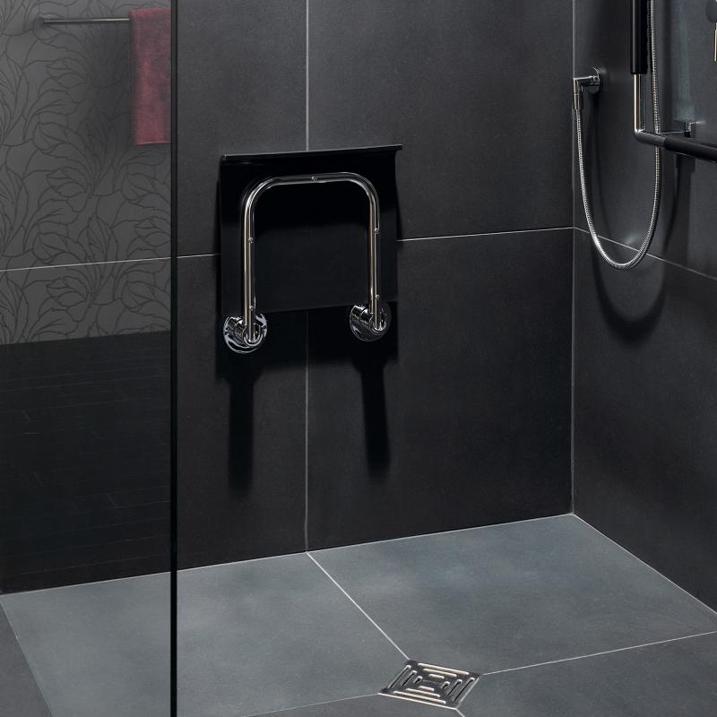 Emco System2 壁掛式折疊座椅可在您需要時為您提供可靠的幫助。當你不使用時,可輕鬆上掀靠於牆上。這使其成為全家人使用的浴室的理想選擇。